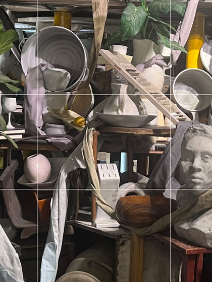 In Professor Phillia Yi’s rigorous introductory drawing course, I entered a disciplined framework for seeing and translating form. Working almost exclusively in charcoal, I learned to build values, perspective, and compositional hierarchy through sustained still-life studies. Objects, drapery, and space became a laboratory for investigating depth without relying on line alone—constructing layered planes, calibrating tonal shifts, and orchestrating movement across the page.